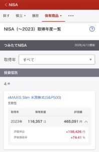 内訳:2枚のスクリーンショットは、旧つみたてNISA口座の保有状況の記録です。